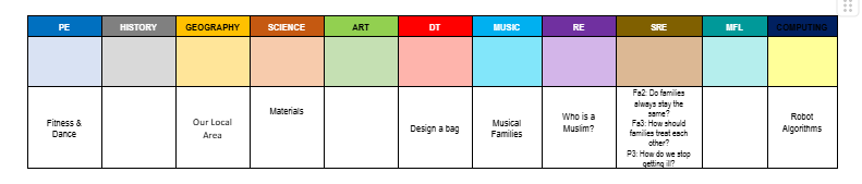 Our PE day will be Wednesday this half-term - please ensure your child brings their PE kits daily or leaves them at school for the half-term as PE days can be subject to change or for additional PE days.