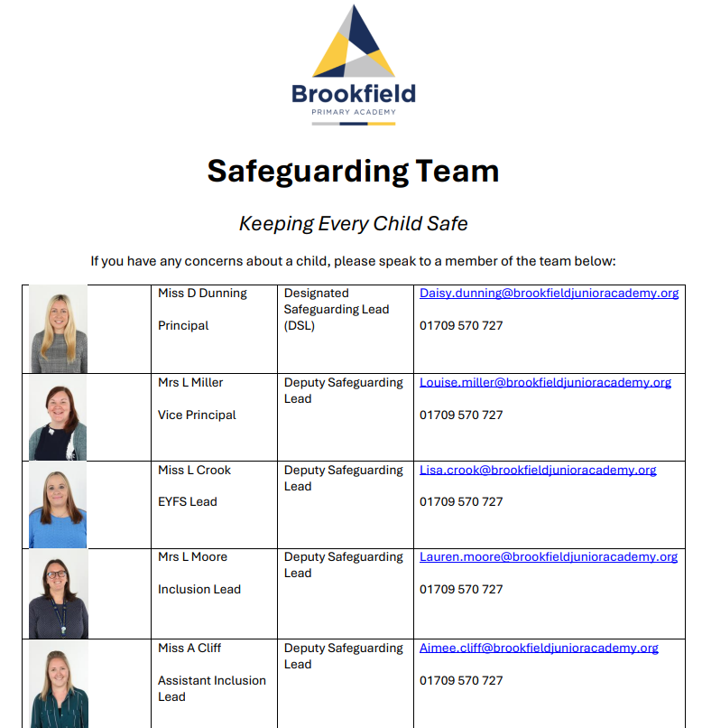 At Brookfield Junior Academy we have a Safeguarding Team, however all adults in the academy have a responsibility to promote and safeguard the welfare of all our children. We constantly seek to identify and overcome barriers to learning as this is an important part of the partnership between school and families.